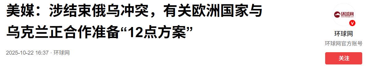 但就在日前,一份被称为“12点和平计划”的文件,突然出现在西方多个主流媒体的报道中,让人感觉到,可能真的到了一个转折点。